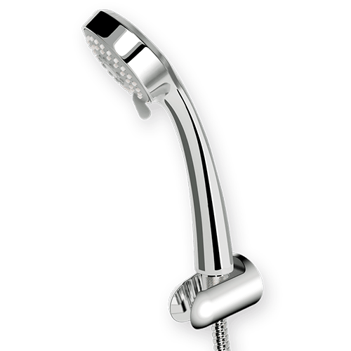 • compuesto por: mango de ducha con 3 jets, manguera flexible de ducha acero inoxidable cromado y soporte de ducha cónico mural.