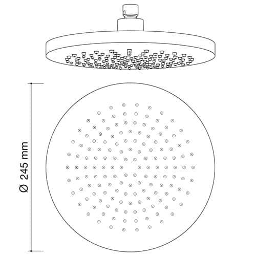 overhead shower illa Ø245mm. made by chrome plating thermoplast, white nozzles.